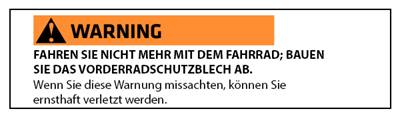 FAHREN SIE NICHT MEHR MIT MONTIERTEM VORDERRADSCHUTZBLECH