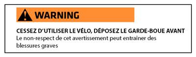 CESSEZ D’UTILISER LE VÉLO JUSQU’À CE QUE VOUS AYEZ DÉPOSÉ LE GARDE-BOUE AVANT